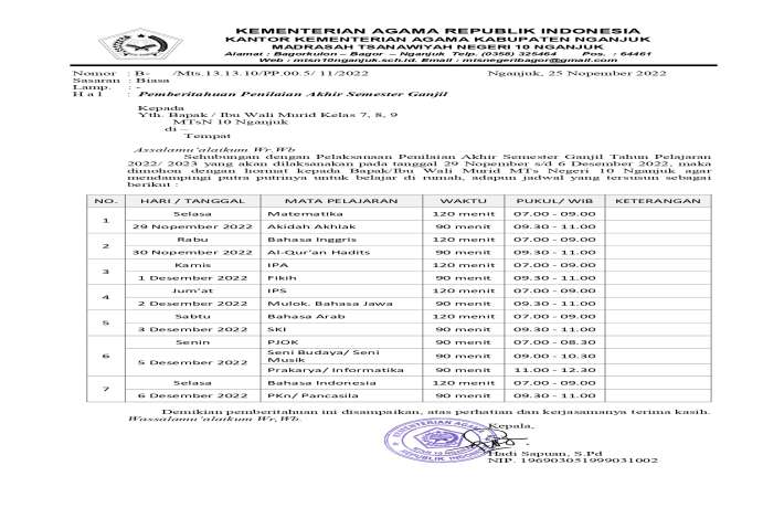 Selasa 17 Januari 2023 MTsN 10 Nganjuk mengadakan ''Police Have Fun to MTsN 10 Nganjuk'' yang diisi oleh Kasatlantas Polres Nganjuk . Dalam acara ini di isi bagaimana standar keselamatan dalam berkendara dan pengenalan rambu-rambu lalu lintas, penyalahgunaan Narkoba dan menghindari kriminalitas,…